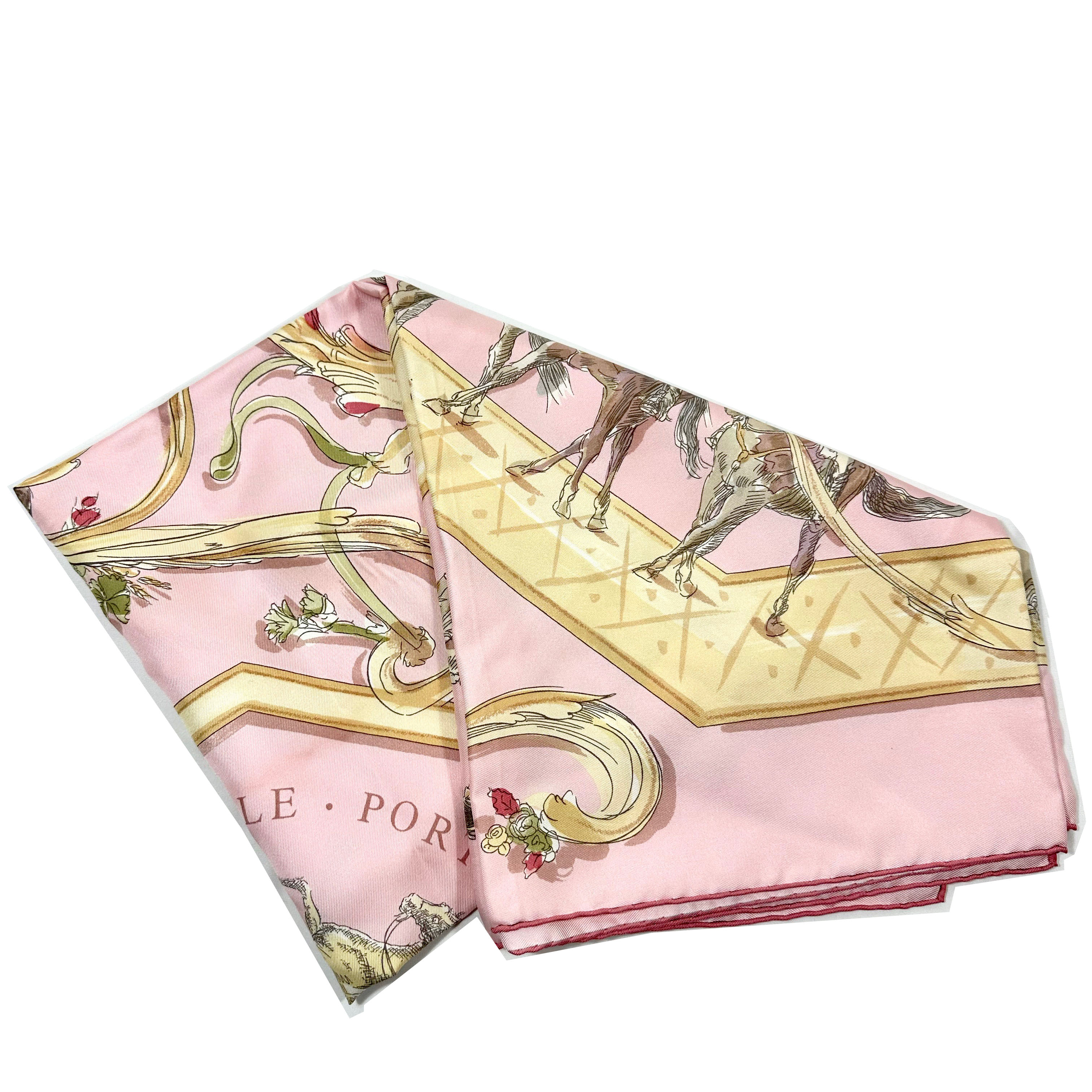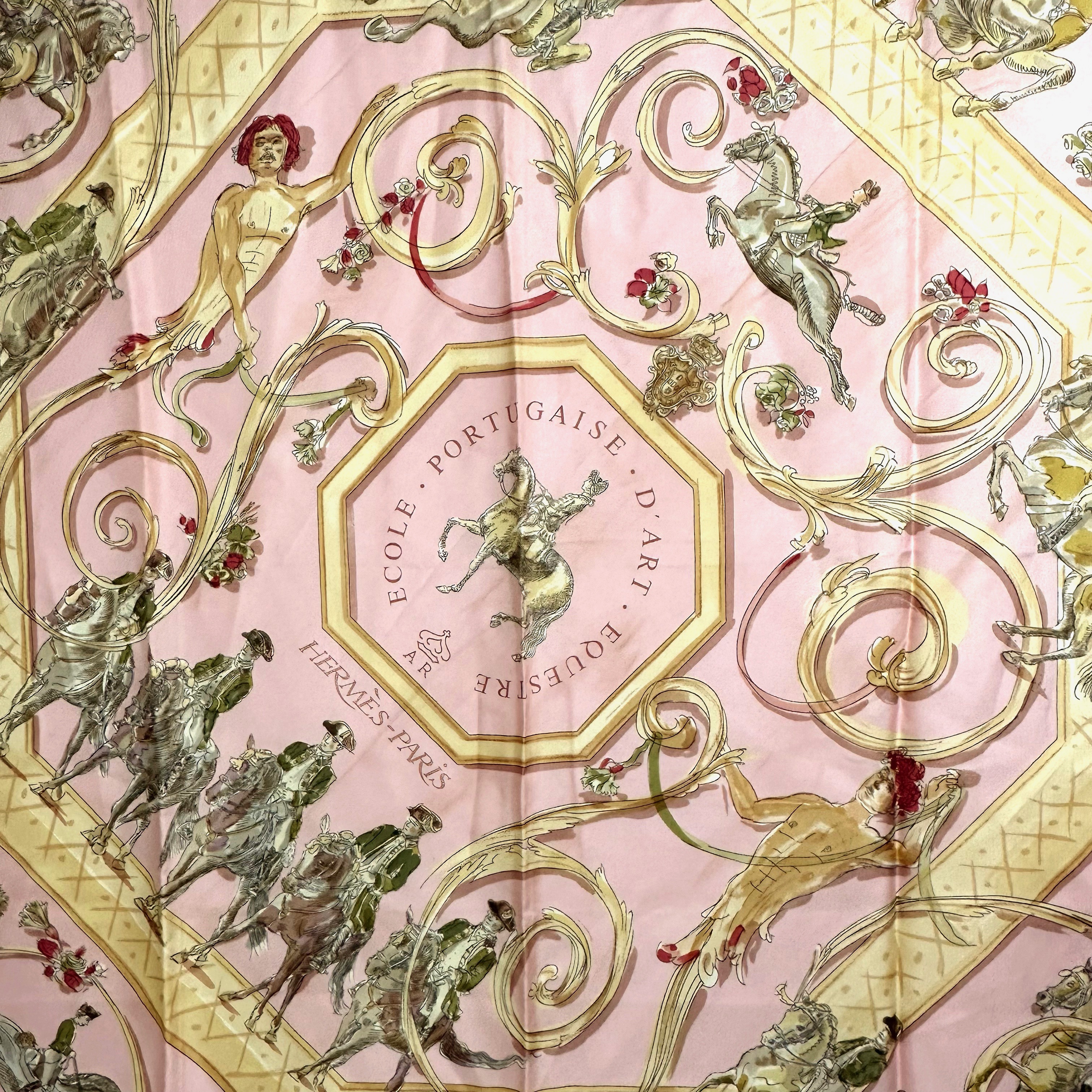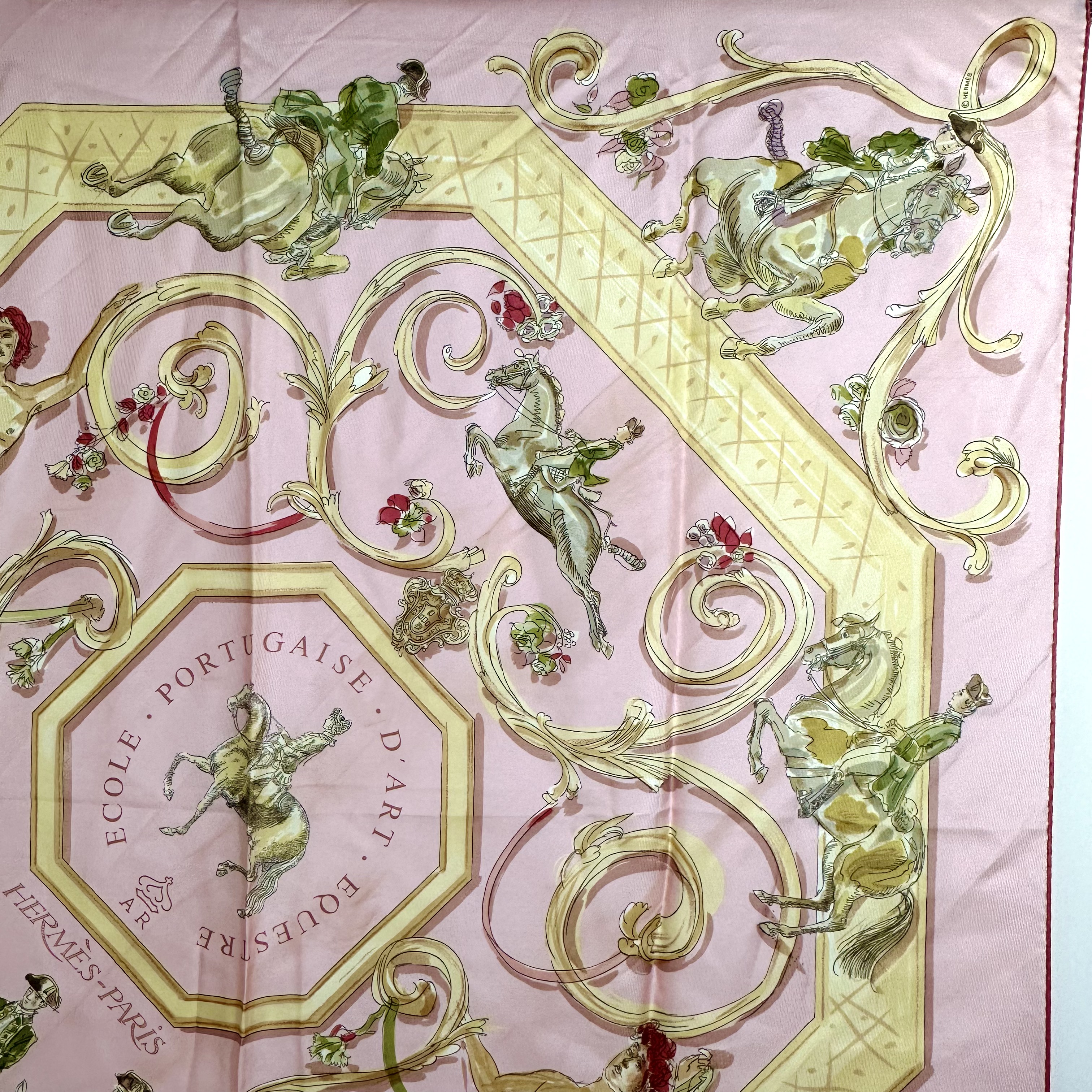 Hermès 90 Rosa Silk Carré Scarf ’Ecole Portugaise D’Art Equestre’