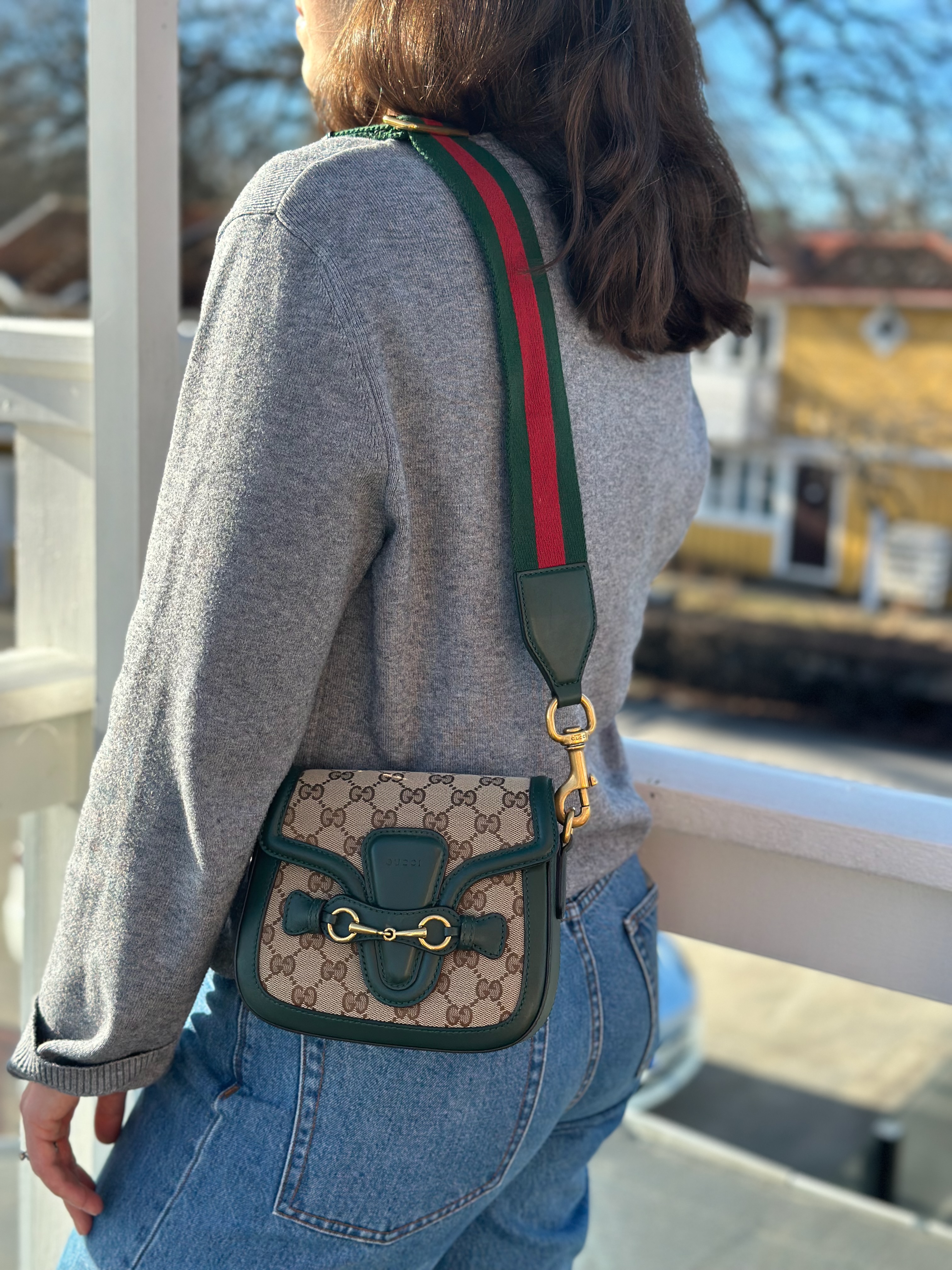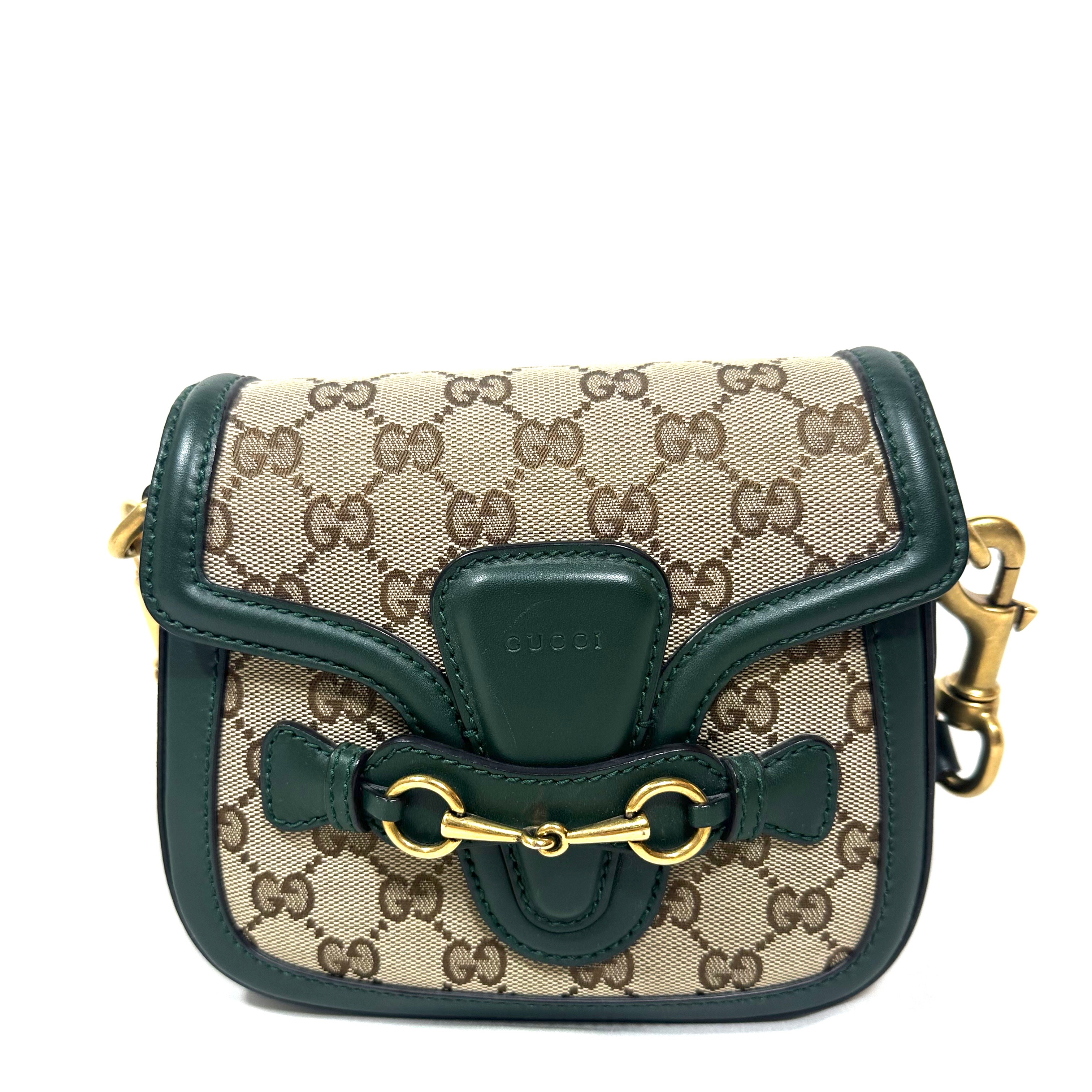 Gucci Lady Web grön crossbody väska i mycket bra skick. Lädret visar vissa märken från användning